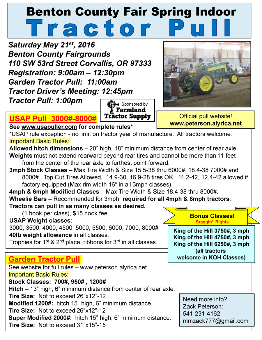 Welcome to the information page for the Benton County Fair Spring Tractor Pull |