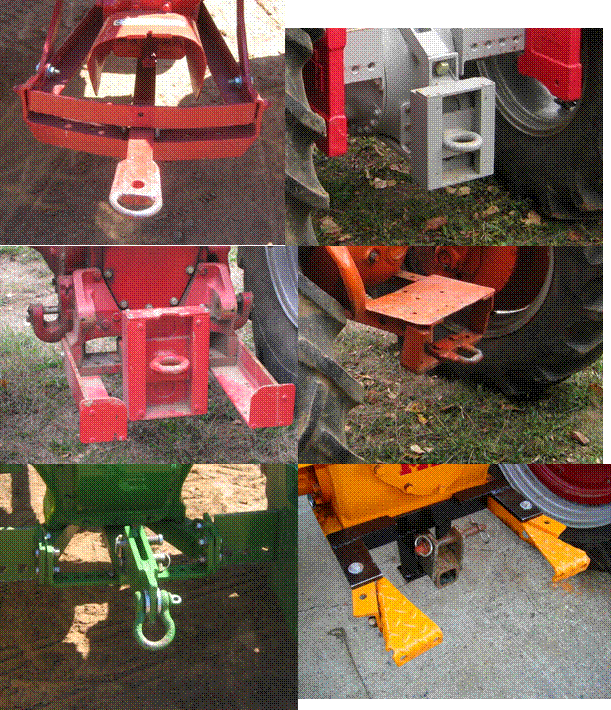 If a standard drawbar is used, a clevis may be used for the hook. In this situation drawbar height is measured to the top of the drawbar. Position of the drawbar behind the rear axle is measured to the rear-most edge of the vertical hole in the drawbar.
